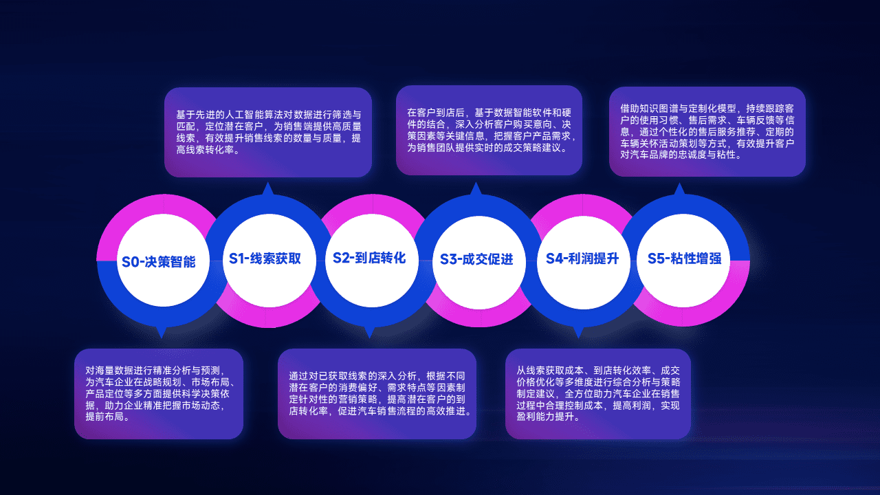 通过拓宽潜在客户来源、、、、优化线索分配并提高到店转化率,,,以增强销售效率。。同时,,,,利用线索数据不断优化分析模型,,,,有效提升转化率,,,扩大营销影响力。。